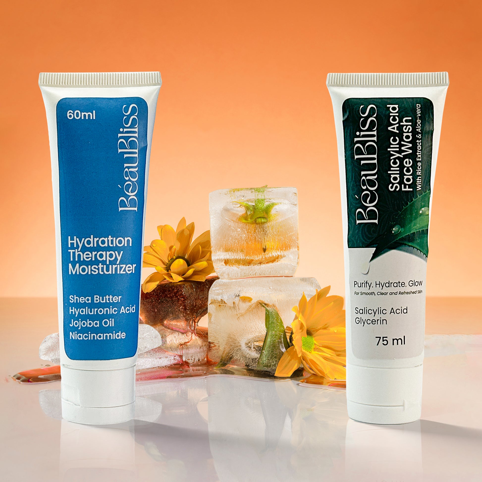 Introducing the Beau Bliss Clean & Calm Duo — your go-to daily skincare bundle to deeply cleanse, calm, and nourish acne-prone or sensitive skin. Featuring our Anti Acne Salicylic Acid Face Cleanser enriched with aloe vera juice and rice extracts, paired with a niacinamide-infused moisturizer, this duo is designed to control oil, reduce breakouts, and restore your skin’s natural glow — all without drying or irritating your skin.